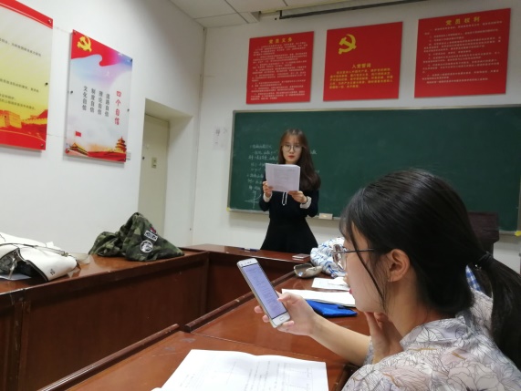 说课的准备工作是教案的书写,其内容和美观都需要重视。就教案设计的美观和丰富程度而言,吕佳佳同学的教案更让人耳目一新。吕佳佳同学对教材进行了深入的分析,也对学生学习动机采用了科学的研究方法对其进行剖析。教案设计的很到位。就内容而言,在场的同学各有各的亮点。在说课的过程中,同学对课程导入的设计、重难点的把握、知识点的过渡等都做了详细地介绍。通过他人的说课,同学发现了自己的教案缺少的知识点或者是找到了更好引领学生学习的方法,收获很大。三人行,必有我师焉。