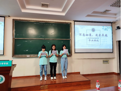 仪式伊始,大家一起观看了17级卓越教师班毕业视频,视频生动地记录了大学四年来,卓越教师班的各个同学一起成长,一起进步。并在老师的指导下一步步取得成绩,走向卓越。卓越教师班的经历也给班级的各个同学带来了许多感悟。第三小组的同学以诗朗诵《毕业寄语》表达了他们对教师职业的向往,表现了他们为了成为一名优秀的教师四年来所付出的努力,表达了他们对每一位指导老师深切而浓厚的感激之情。