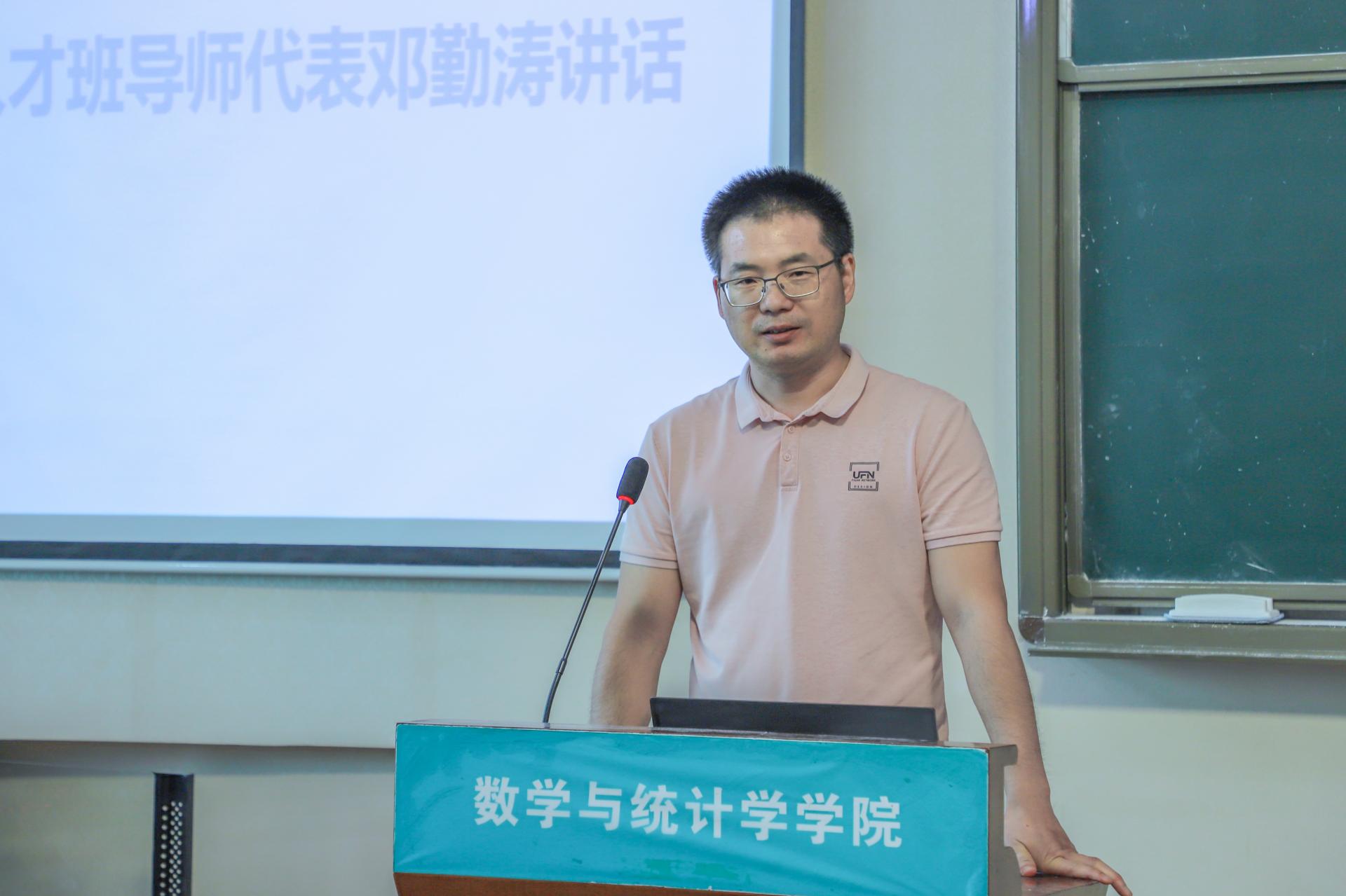 2022级卓越人才班导师代表邓勤涛结合当前升学形势,围绕专业学习、数学竞赛准备、目标规划等方面对同学们提出要求,希望同学们把深入科研作为自己的学习目标,在提升专业课学习成绩与准备学科竞赛的同时,还要对未来做好清晰的规划。