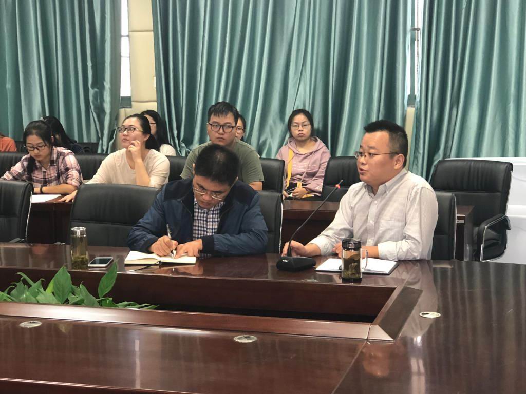 伴随着凉爽的秋风,华中师大赴合肥市第六中学进行教育实习的各位成员已经在这里度过了近一个月的时间。实习工作也进入了佳境,各方面工作都有条不紊的进行着。2018年10月9日下午4:00,实习队成员于7楼会议室开展第一次总结交流活动,高一年级部主任蔡胜国、副主任李刚参与了本次活动并对第一阶段的实习工作进行了总结点评。