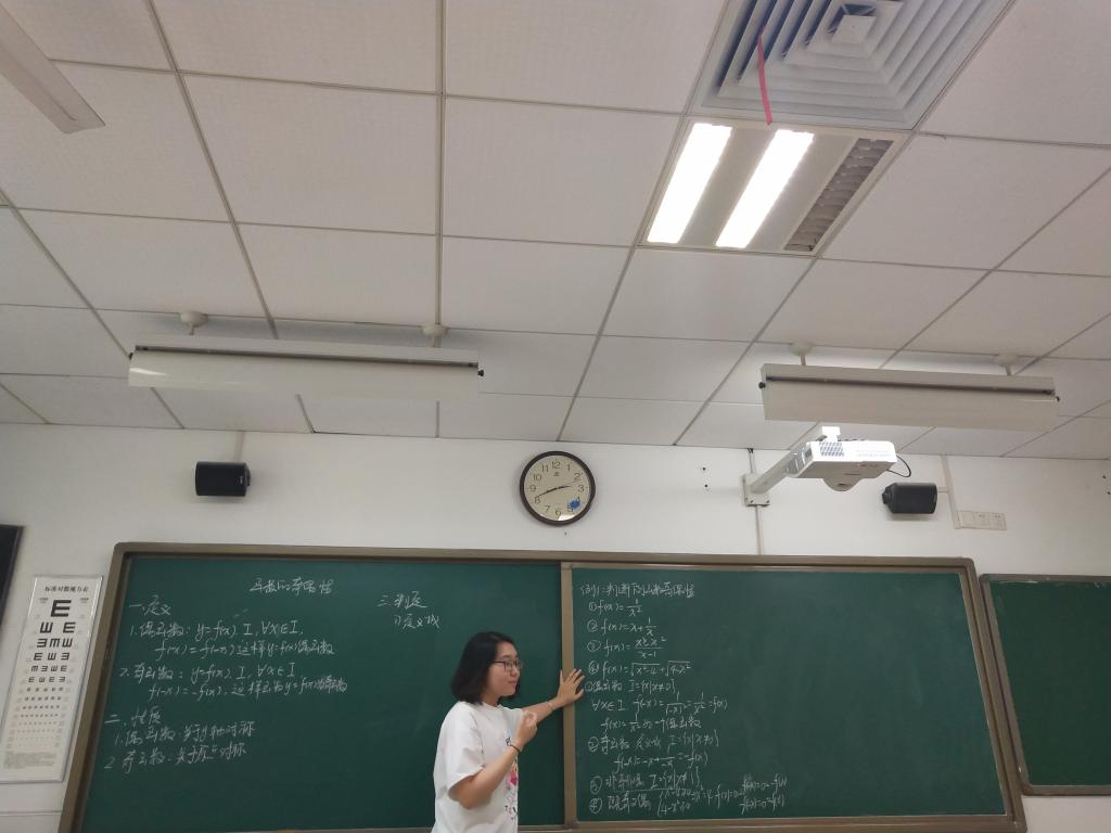 吴岚同学在上一次的小组活动中带来了她对于高中数学函数奇偶性一课的模拟讲授,在听取刘运新老师给出的相关建议后,对其进行了相应的优化和修改。修改完之后,吴岚同学利用函数的单调性进行课程导入,并通过邀请同学作函数图像的方式,引出偶函数与奇函数的定义,并且在定义的基础上,吴岚进一步详细讲解了奇函数与偶函数的定义,并通过定义延伸出奇偶函数的判定方法。为了让同学们更好地掌握有关函数奇偶性的知识点,吴岚还有针对性的挑选了几道例题让同学在黑板上写出解答过程,借此掌握学生的听课效果与知识吸收情况。