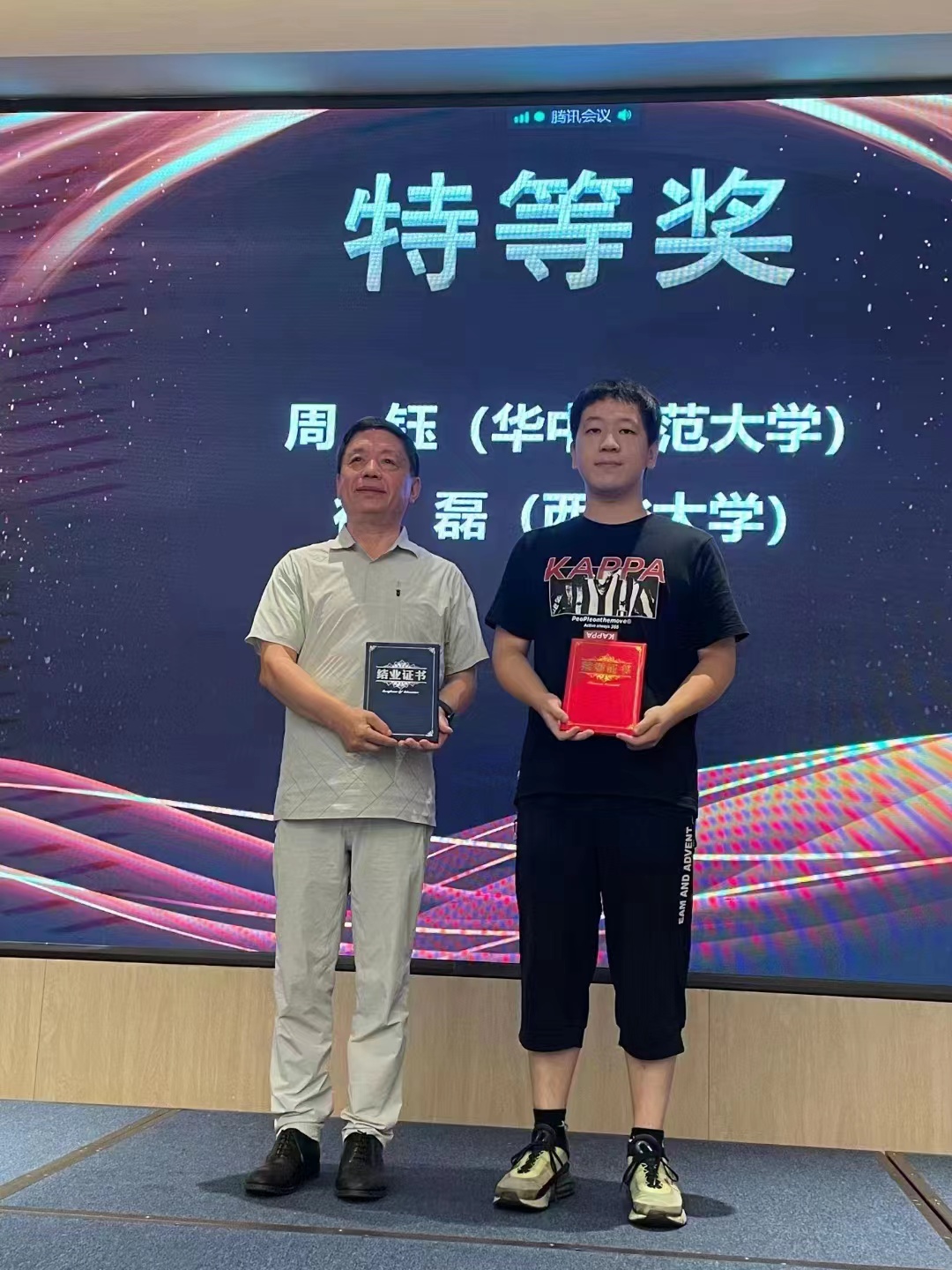 辛周平教授(左)与特等奖获得者周钰同学(右)合影