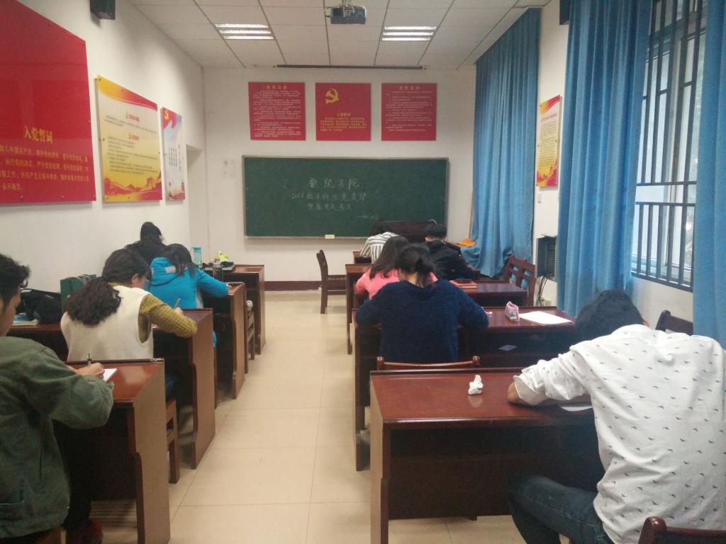 2018年10月12日中午12:00,我院2016级本科生党支部的十位预备党员迎来了一次党务知识考试,本次考试围绕“入党流程图”、“个人的入党基本信息”、“入党誓词”“党支部基本信息”四大内容展开。党支部十位预备党员在考试前进行了全面的复习,考试开始后,大家纷纷奋笔疾书。在考试结束后,有同学说道:“进行一次这样的考试是必要的,这次考试让我对党的知识有了更加清晰的了解和认识。”