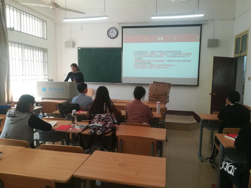 接下来她向大家介绍了脱贫攻坚的意义,主要有四方面:打赢脱贫攻坚战,事关全面建成小康社会;打赢脱贫攻坚战,事关增进人民福祉;打赢脱贫攻坚战,事关巩固党的执政基??;打赢脱贫攻坚战,事关国家长治久安。