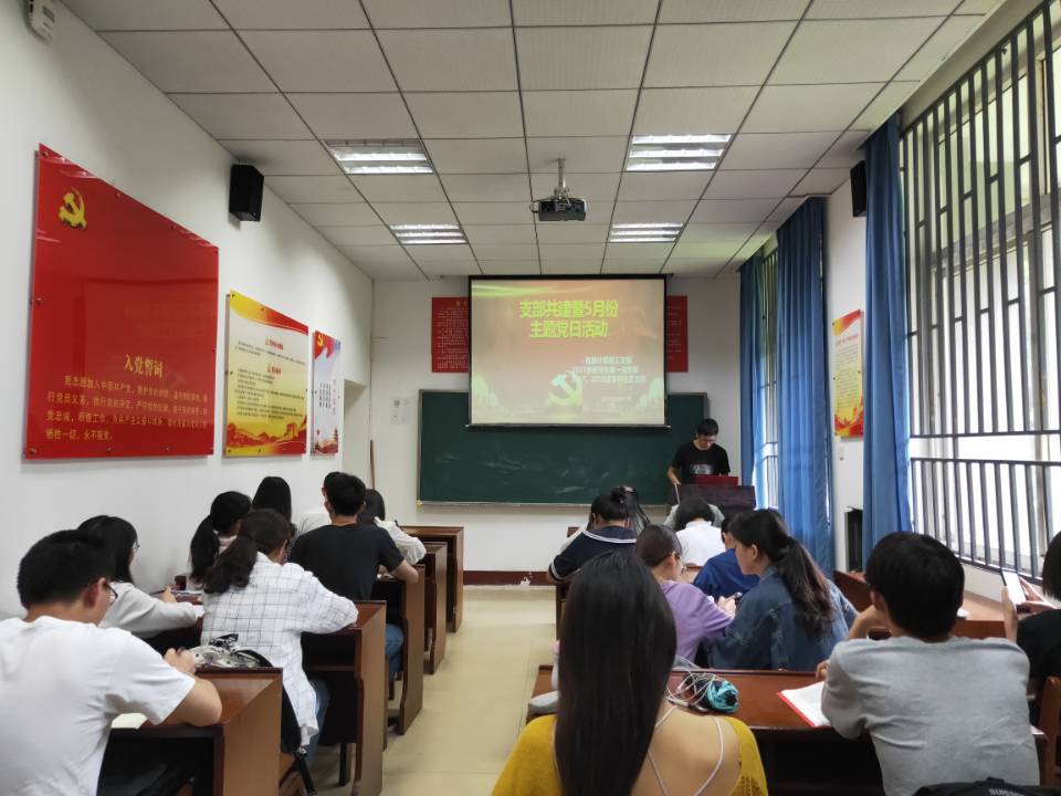 活动开始, 各支部成员重温入党誓词,诵读党章,明确党员的权利。接下来,由高永帅同志带领大家学习了纪念五四运动100周年习近平重要讲话精神,着重讲解了五四运动的历史意义以及新中国青年应该做到的六个“要”。接着针对《中共华中师范大学委员会关于进一步加强党支部建设的实施办法》这一文件,高永帅同志从党支部的职责、地位、以及党支部的设置、党支部的工作制度、内容带领大家进行了学习。