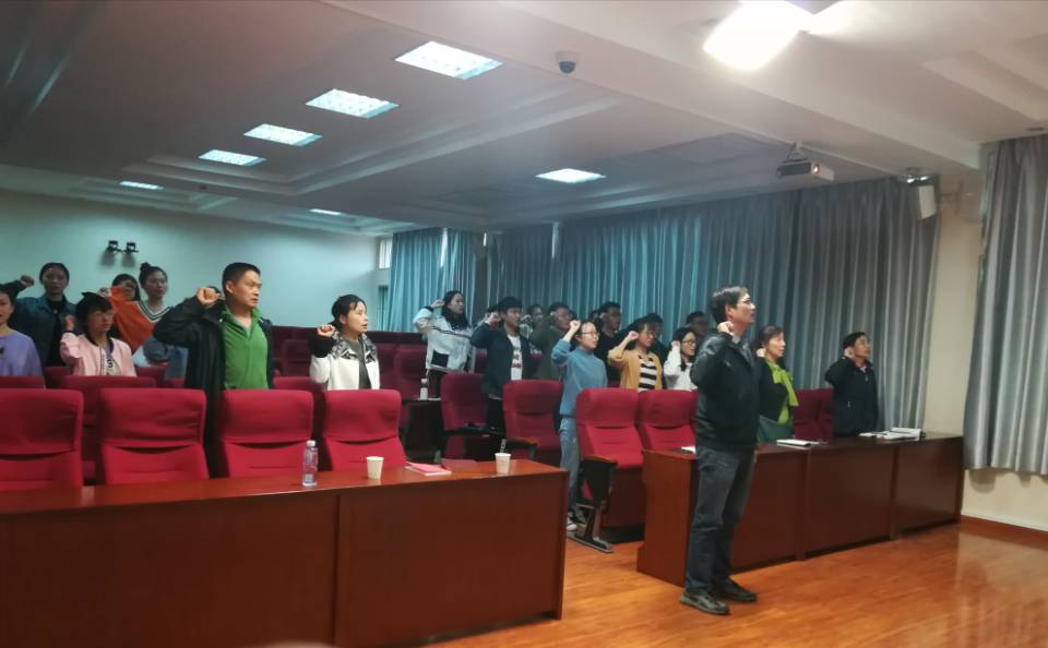 紧接着,教工支部书记韩照文老师让我们全体起立,重温入党誓词。而且分享了以“重温习近平教师节寄语:做好老师要有理想信念”为主题的党课。韩老师语重心长地为我们讲述了作为一名教师所要具有的师德和情怀,老师的初心和使命始终不能忘记,不到最后一刻,坚决不能忘记自己作为一名教师所肩负的职责。