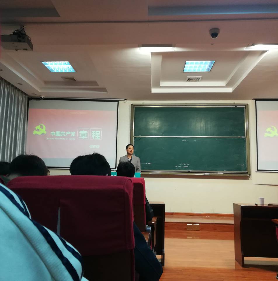 会议伊始,院党委书记王中给我们讲解了党章的相关内容,讲述中国共产党是无产阶级的政党,党章是马克思主义的一面旗帜,具有政治性,党章是管党治党的总规矩,是检验一个党员党性的重要标准,所以我们广大党员需要反复学习党章。与此同时,王中书记还分享了个人学习党章的一些方法,如结合党史、结合现实问题来学习党章。通过向身边的优秀党员老师和优秀党员校友学习,不断加强党员的先进性。