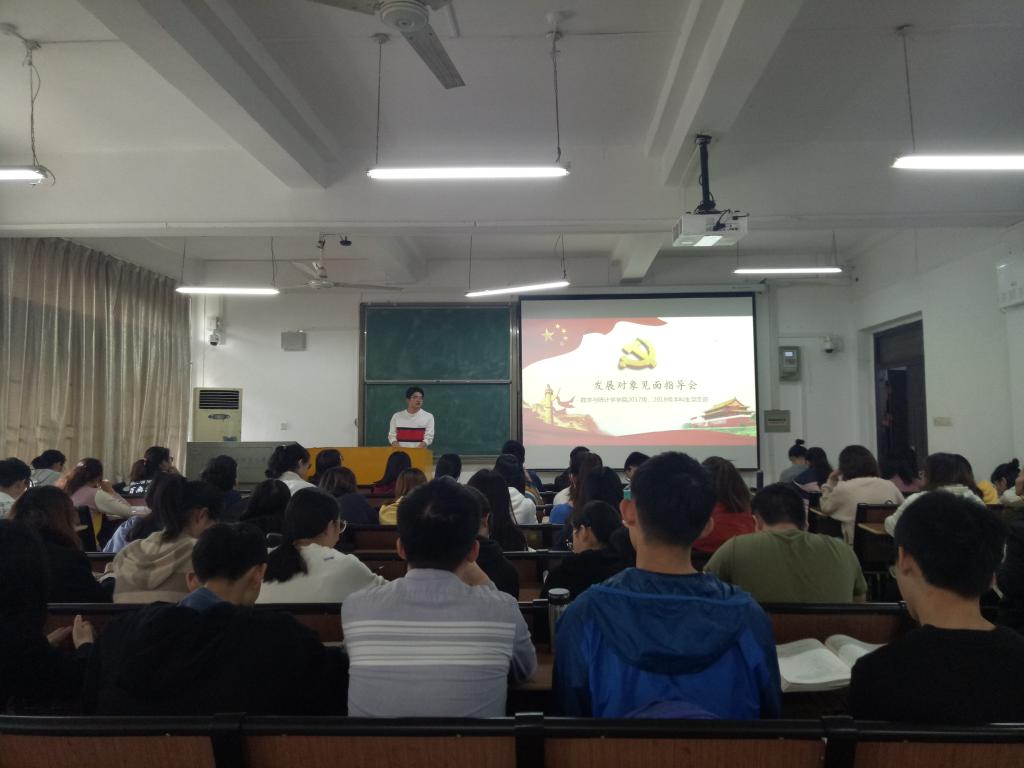 10月31日中午,数学与统计学学院2017级、2018级本科生党支部于6201教室召开第二批发展对象见面指导大会。本次大会由党支部书记王奥林主持,全体预备党员及发展对象参与本次会议。