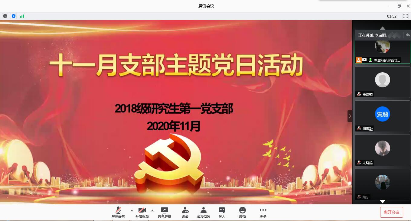 图1 2018级研究生第一党支部开展11月支部主题党日线上活动