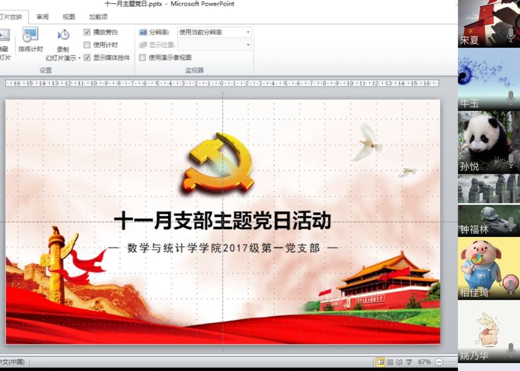 11月20日中午12:30,数学与统计学学院2017级第一党支部开展了线上主题党日活动,本次活动的主题围绕“开展基层党组织和党员诊断行动”、“学习《中国共产党基层组织选举工作条例》”进行展开。