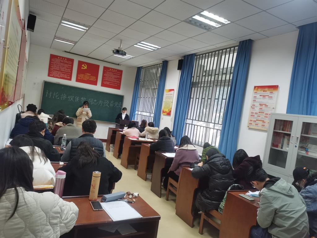会议伊始,李启丽同志宣布大会开始,并介绍了大会的议题和大会主要流程。接下来分别对发展对象逐个进行了讨论。会议第一项,发展对象汇报有关情况。会议第二项,两名入党介绍人汇报其在培养考察期间的思想、工作、生活,学习等方面的情况。会议第三项,组织委员贾婉茹同志代表支部委员会汇报对发展对象的审查情况。会议第四项,与会党员发表意见,对该发展对象能否转为预备党员进行了充分讨论。会议第五项,发展对象对支部大会讨论的情况表明自己的态度。会议第六项,具有表决权的正式党员对该发展对象能否被吸收为预备党员进行无记名投票表决。会议第七项,李启丽同志宣读支部大会决议。