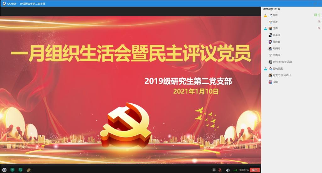 2021年1月10日下午,我院2019级研究生第二党支部全体党员于线上开展了1月支部组织生活会暨民主评议党员。