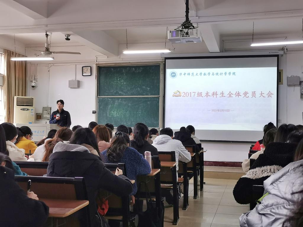 3月10日下午,2017级本科生全体党员大会于6301教室召开,2017级本科生第一党支部书记王奥林出席大会并讲话,118名2017级本科生党员参与此次大会。此次大会分为总结上学期的工作情况、部署本学期的工作以及学生党支部工作考核自评三个环节。