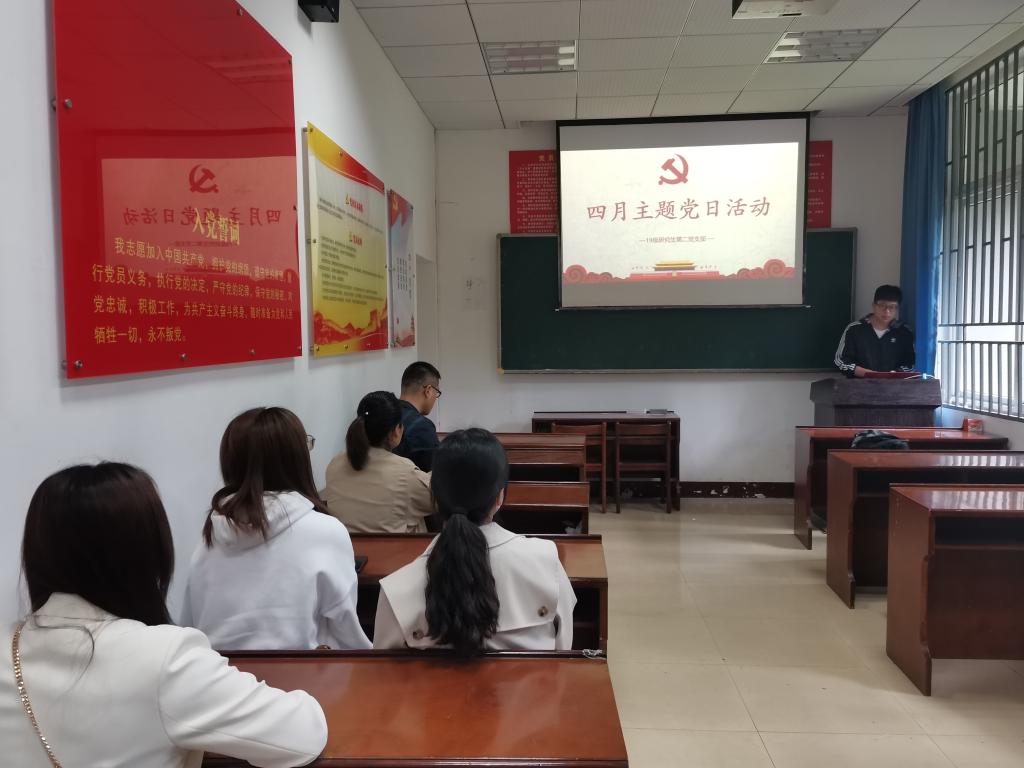 4月23日下午,我院2019级研究生第二党支部于六号楼M116党员活动室开展了四月主题党日活动,因部分党员尚未回校,故本次党日活动以在校党员线下活动与不在校党员自学相关材料并撰写学习心得的方式展开。