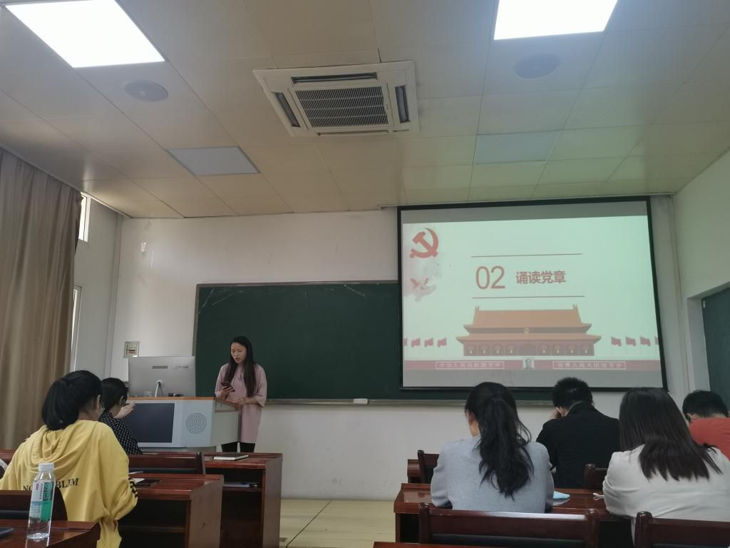 4月29日中午,我院2017级本科生第二党支部在六号楼二楼报告厅开展主题党日活动,活动分为五个部分,一是重温入党誓词;二是诵读党章;三是缴纳党费;四是专题学习;五是支部重点工作安排。