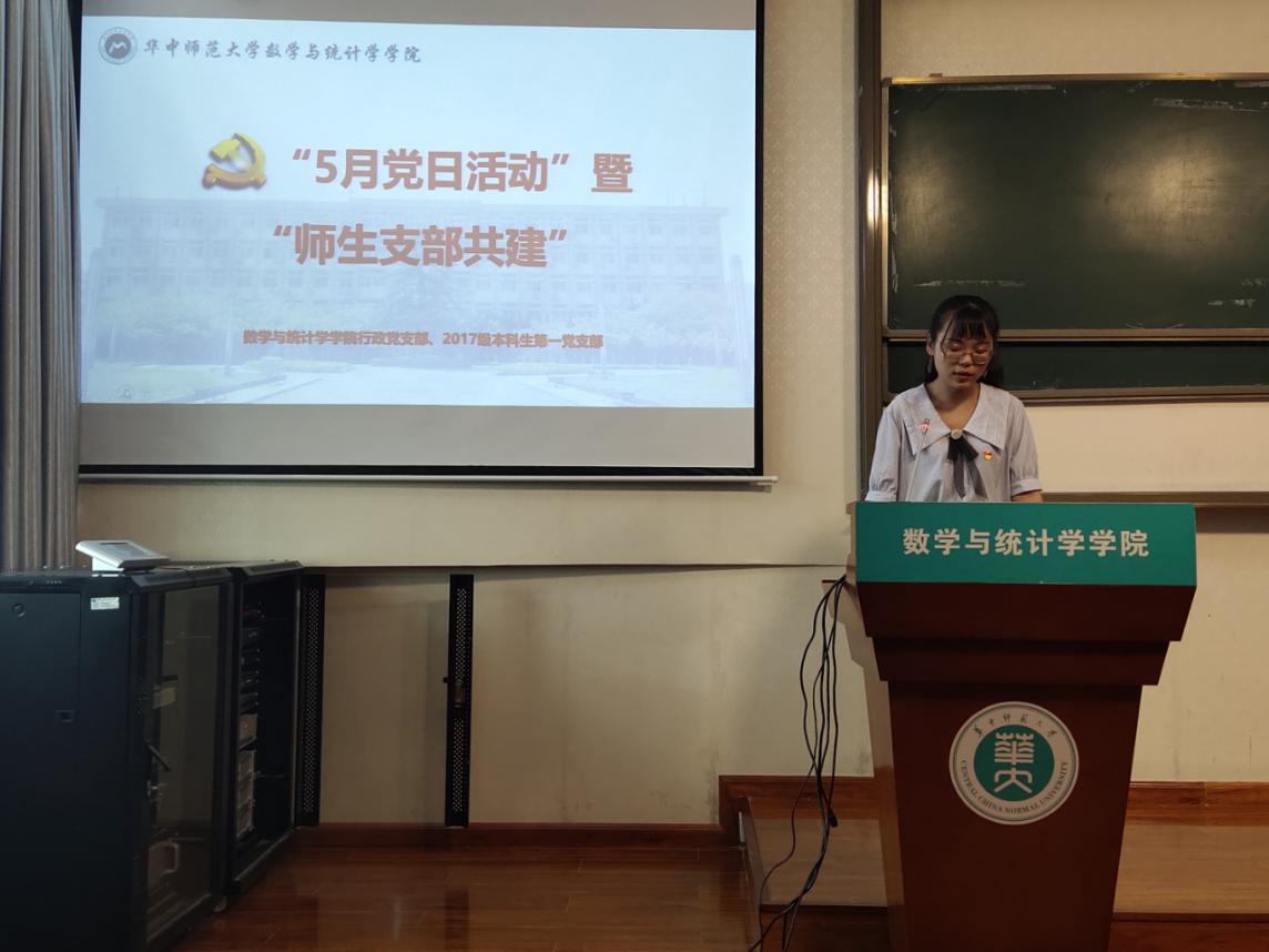 5月31日,华中师范大学数学与统计学学院2017级本科生第一党支部五月主题党日活动暨师生支部共建活动在六号楼6401顺利召开。