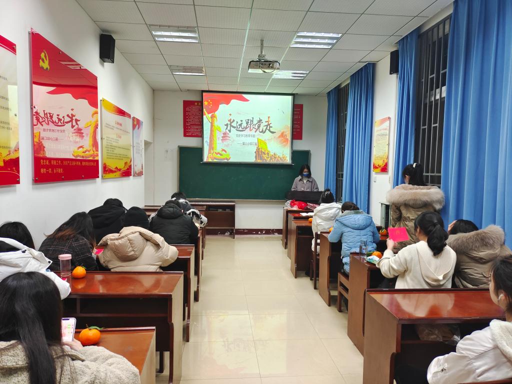 紧接着,由党支部第三小组的成员罗林晏同志带领我们学习这次党日活动的内容。在学习中央政治局党史学习教育专题民主生活会会议精神和习近平总书记重要讲话精神时,她分享到:一年来,以习近平同志为核心的党中央团结带领全党全国各族人民,隆重庆祝中国共产党成立一百周年,实现第一个百年奋斗目标,开启全面建设社会主义现代化国家、向第二个百年奋斗目标进军新征程。一年来,世界百年未有之大变局和新冠肺炎疫情全球大流行交织影响,国内疫情防控和经济社会发展各项任务极为繁重艰巨,统筹疫情防控和经济社会发展。我国经济发展和疫情防控保持全球领先地位,党和国家各项事业取得新的重大成就。我们党走过了一百年的光辉历程,团结带领人民取得了举世瞩目的重大成就,积累了极其宝贵的历史经验。党的历史是最生动、最有说服力的教科书。我们党历来重视党史学习教育。在学习领会党史学习教育总结大会精神时,她说到:习近平总书记作岀重要指示,强调不断巩固拓展党史学习教育成果,团结带领全国各族人民满怀信心奋进新征程建功新时代。党史学习教育总结会议12月24日在京召开。各党支部要组织全体党员深入学习领会、坚决贯彻落实习近平总书记重要指示精神,巩固拓展党史学习教育成果,推动把学习贯彻党的十九届六中全会精神引向深入,引导广大党员、干部深刻领悟中国共产党为什么能、马克思主义为什么行、中国特色社会主义为什么好,把思想和行动统一到党中央要求上来,以强烈的历史主动精神奋进新征程、建功新时代。