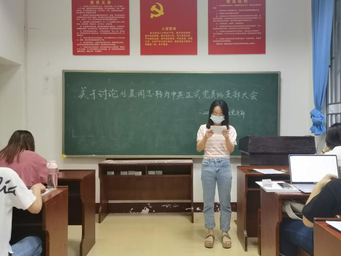 2022年6月13日,我院2019级本科生党支部于6号楼党员活动室召开了关于讨论中共预备党员刘晨等21位同志的转正大会。会议由党支部组织委员华昭淇同志主持。