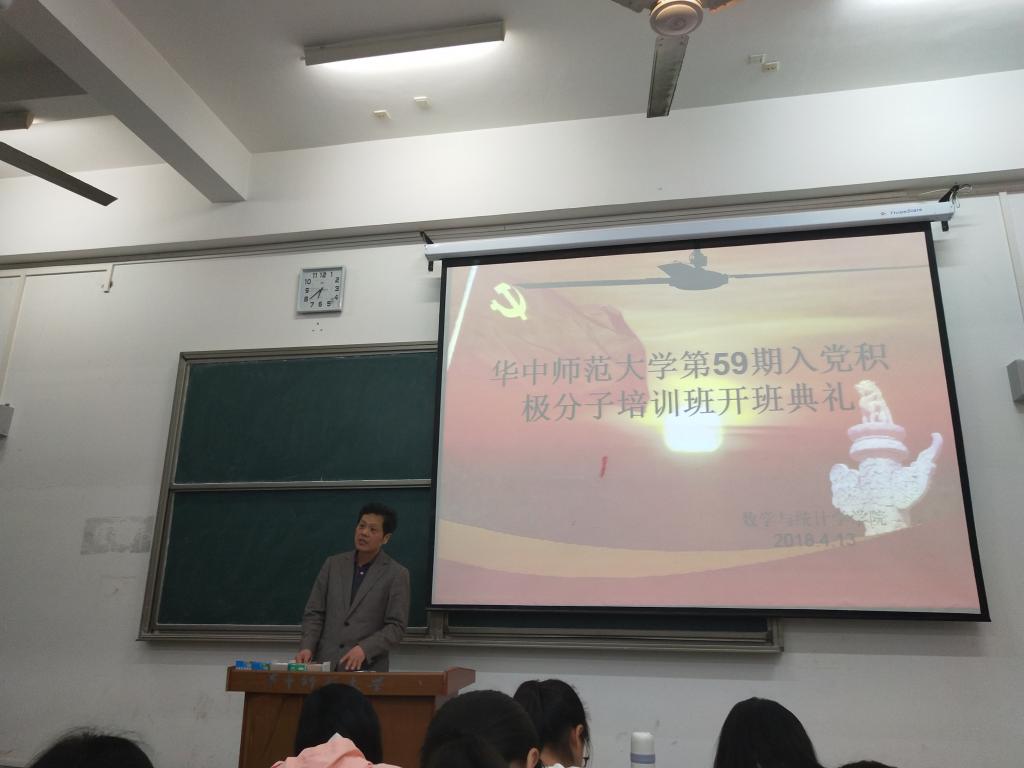 4月13日晚上,数学与统计学学院第59期入党积极分子培训班开班仪式于9号楼9402教室举行。本次开班仪式由培训班带班老师张凡主持,院党委书记王中、培训班班主任李荣元及第59期入党积极分子全体成员出席本次仪式。