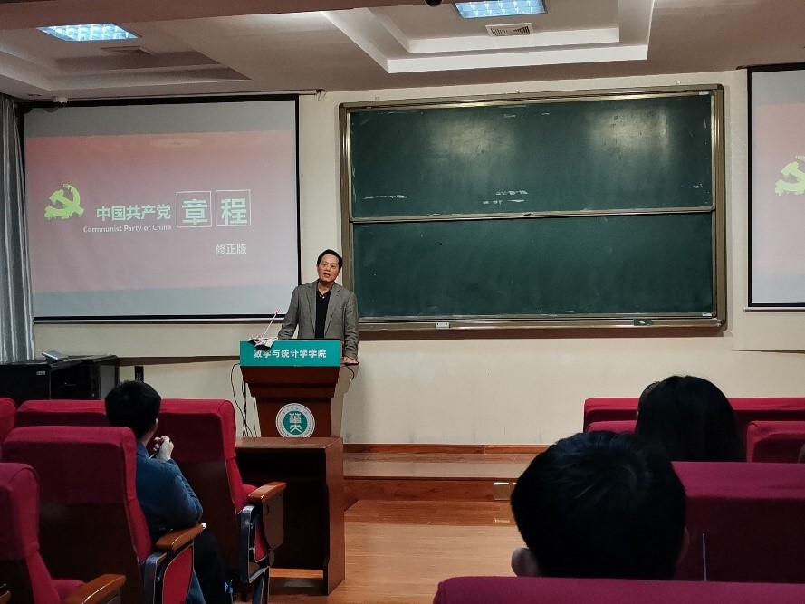 为加强思想政治建设,提高发展对象思想素养,提升党员发展质量,数学与统计学院于11月15日晚上,在六号楼6401教室举办第六期发展对象培训班,共50名发展对象参加了此次活动。