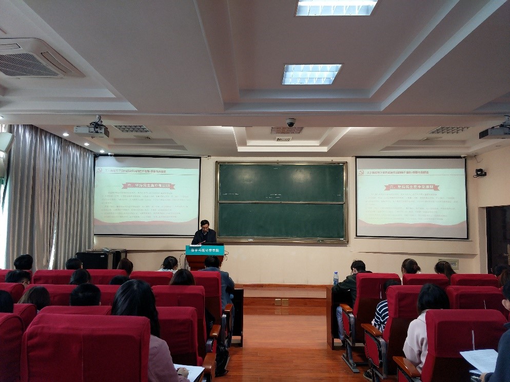 2019年11月16日早上,数学与统计学学院第6期发展对象培训班在六号楼6401展开。培训的主要形式为学员自学和课堂讲授《新形势下党内政治生活若干准则》(以下简称《准则》),本次课程由张军副书记讲授。