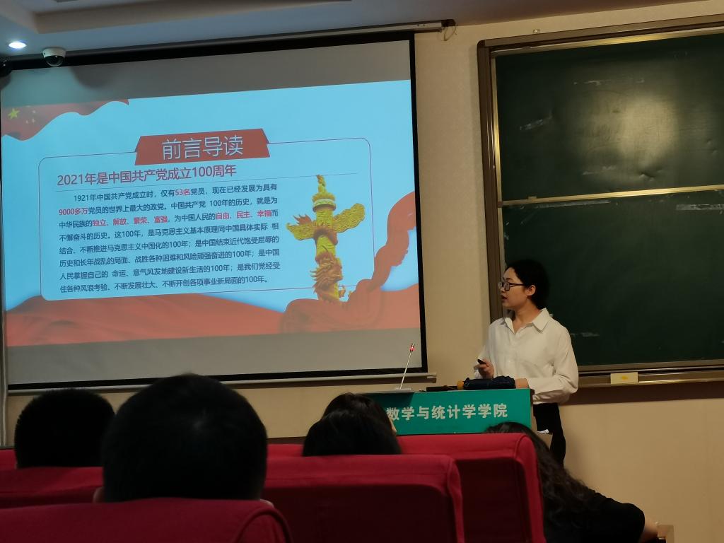 5月16日早上,数学与统计学学院第八期发展对象培训班第四次课程在6401开展。本次课程的主讲人为华中师范大学马克思主义学院侯梅玲老师,讲授的内容是党史、新中国史、改革开放史、社会主义发展史,侯老师脉络清晰地为同学们讲解了四史,同学们收获颇多。
