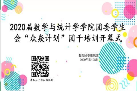 (通讯员 王怡蕴)5月28日中午,为提高干部的工作素养及促进部门间的融合,数学与统计学学院(以下简称数统学院)团委学生会“众焱计划”团干培训开幕式暨宣传培训于腾讯会议平台举行。本次开幕式由组织部负责人孙子惠主持,数统学院团委学生会全体干部参加本次活动。