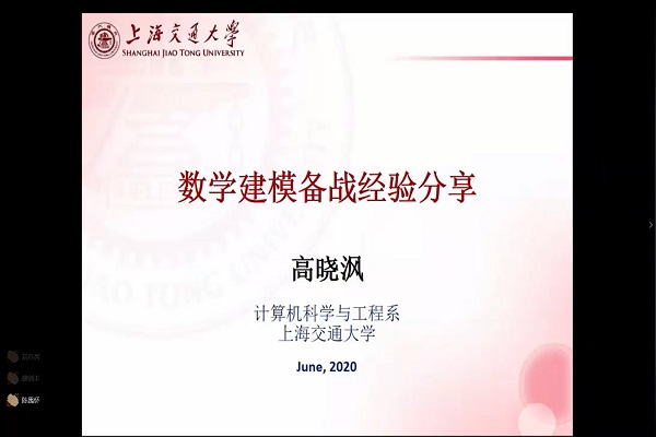 (通讯员 张宁)6月6日下午,上海交通大学计算机系教授高晓沨受邀在腾讯会议上进行数学建模备战的经验分享。本次分享面向全体数学与交叉学科的老师及学生,旨在分享备战数学建模竞赛的经验,引导学生对数学建模产生兴趣,鼓励学生参加建模竞赛。华中师范大学数学与统计学学院(以下简称“数院”)组织各年级学生参加了此次分享活动。
