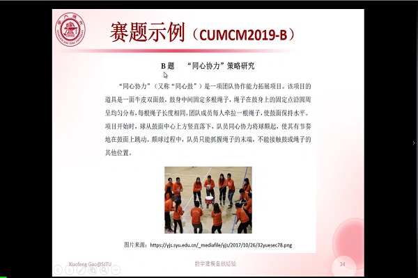 (通讯员 张宁)6月6日下午,上海交通大学计算机系教授高晓沨受邀在腾讯会议上进行数学建模备战的经验分享。本次分享面向全体数学与交叉学科的老师及学生,旨在分享备战数学建模竞赛的经验,引导学生对数学建模产生兴趣,鼓励学生参加建模竞赛。华中师范大学数学与统计学学院(以下简称“数院”)组织各年级学生参加了此次分享活动。