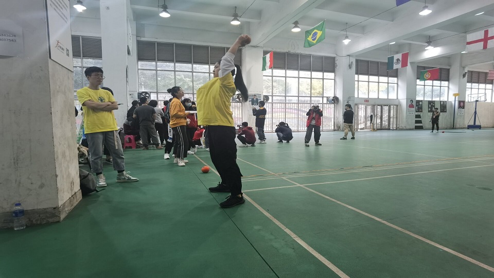 次日上午,男女后抛实心球团体比赛在佑铭体育场羽毛球馆举行。比赛开始前,选手们有序进行检录,积极热身准备。配合裁判口令,参赛选手依次走到抛掷线前,转过身,双手拿球,反复前后摆臂,找准合适的时机,奋力向后抛去,实心球在空中划出一道优美的弧线,最后完美落地。数统学院选手凭借着良好的心态和过硬的技巧,克服了滑球、角度错误等可能出现的种种失误,在全体队员的共同努力下,最终取得第二名的好成绩。