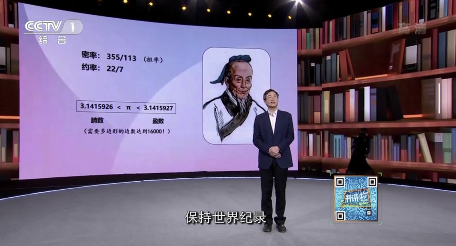 节目伊始,中国科学院院士、中国科学院数学与系统科学研究院研究员袁亚湘与主持人撒贝宁通过有趣的纸牌游戏引出其中蕴含的“群论”数学思想。随后,他为大家介绍了求圆周率π的世界纪录,指出中国南北朝时期数学家祖冲之让圆周率精确度保持了近千年的世界纪录,强调了中国古代数学的辉煌成就。