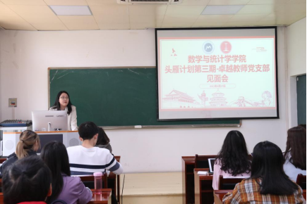 4月27日下午,数学与统计学学院(以下简称“数统学院”)头雁计划第三期-卓越教师党支部见面会于学院2楼报告厅顺利举行?!巴费慵苹敝傅祭鲜φ抛庸?、王铭歆以及第三期全体成员参与此次活动。