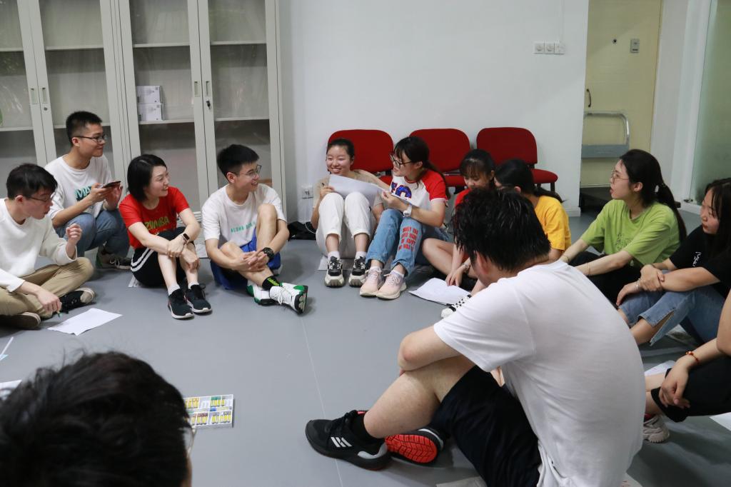 活动伊始,大家通过“乌鸦破冰”的小游戏拉近了彼此间的距离。随后,热身环节“舞动沙蛋”登场。大家在五月天《私奔到月球》的节奏中进行一拿二放、一二三四等多种舞动变式中自由摆动,与此同时,也充分调动起大家的积极性。接着,热舞逐渐升级,伴随着五月天《派对动物》的音乐,“奥特曼式”、“同手同脚式”等等舞蹈动作花样百出,为接下来的环节做了充分的准备。