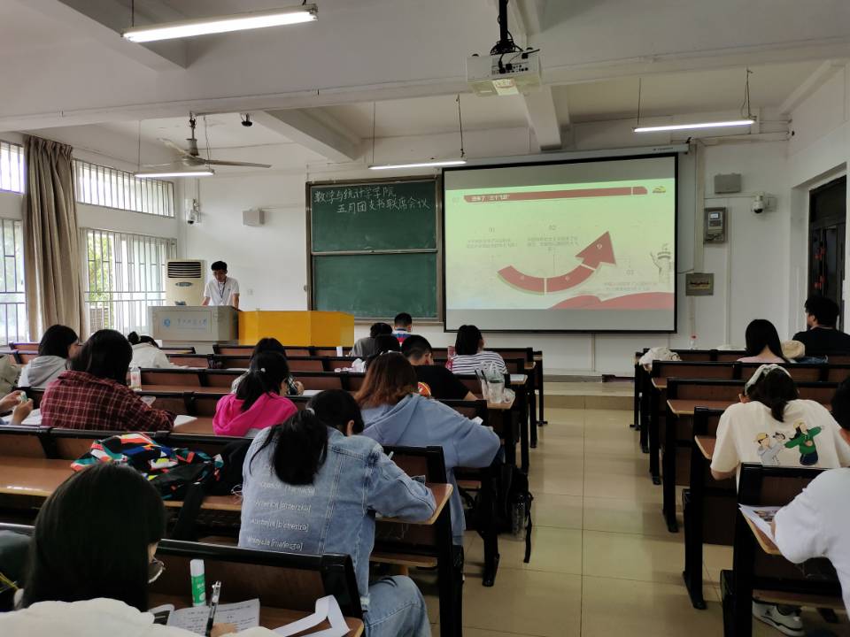 (通讯员 唐佳骏)5月17日中午,数学与统计学学院(以下简称“数统学院”)五月团支书联席会议于六号楼6201教室举行。本次联席会议以“五四精神薪火传,白衣天使当点赞”为主题,旨在让各团支部学习五四青年节的历史精神并加以传承;同时了解国际护士节的起源与主题,知晓护士服务对国际医疗做出的巨大贡献。此次会议由组织部负责人唐佳骏主持,数统学院团委副书记袁瑞祥,组织部全体成员及19、20级团支书出席此次会议。