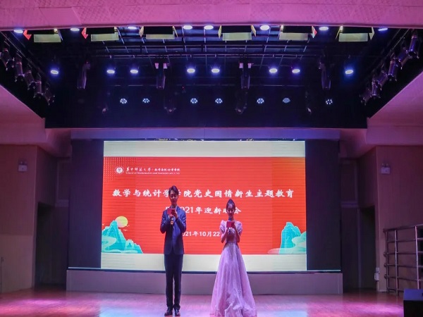 (通讯员 刘晶 吕佳璇)为迎接新生入学,营造文化校园,展现我院学子的风采,激发学生的热情,帮助21级新生更好融入大学生活,10月22日晚,数学与统计学学院(以下简称“数统学院”)党史国情新生主题教育暨2021年迎新晚会于大学生活动中心五楼演播厅举办。院党委书记刘成竹、党委副书记田俊、2101班班主任李娜、2103班班主任刘创业、2104班班主任杨翠红、2109班班主任龙旸靖以及各年级辅导员莅临晚会,数统学院2021级新生参加活动。