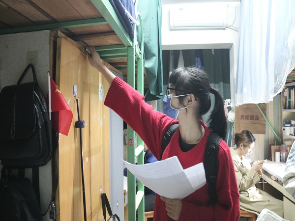 评选过程中,查寝人员表示各个宿舍卫生状况良好,做到了勤开窗通风。部分同学用贴纸、饰品、置物架等精心装饰了书桌,在保持干净整洁的同时,展现数统学院学生们日常生活的温馨美好。同时,查寝人员积极沟通,要求同学们勤做大扫除,书桌摆放要井然有序,鞋子需整理上架,地面、门窗干净整洁,无违规电器。