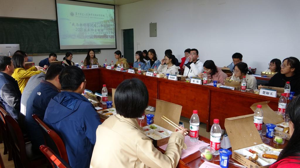 午餐会首先由新生辅导员龙星宇介绍了同学们的基本情况,并回顾了开学以来开展的各项特色活动。参会的12位学生代表进行了交流,同学们畅谈了入学以来自身的真切感受,也提出了现阶段遇到的困惑。同学们提到,自入学以来,学院开展的各类适应性教育活动很好地帮助了大家从高中阶段到大学阶段学习生活的过渡,但是不少同学表示专业课难度较大,生活适应也存在一定困难。老师们耐心听取了同学们的发言,并针对同学们在专业学习、大学生活和生涯规划等方面提出了有效建议。班主任邓勤涛建议同学们要及时地完成课后习题,同时对助教批注后的错题要进行订正,这样可以达到更好地学习效果。副院长郑高峰建议同学们要积极主动和老师进行交流。他指出,如果同学们积极和老师交流,老师的激情也就会被点燃,这种良性互动可以达到教学相长的效果。