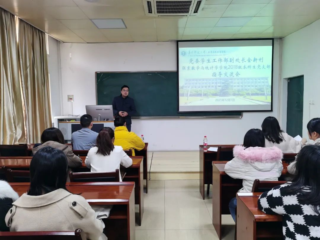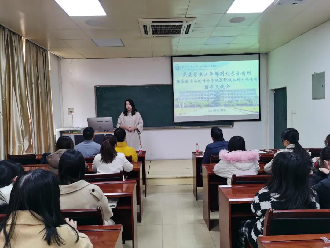 为深入了解2022届毕业生就业过程中的各种问题,帮助大家在就业中有更好的发挥,12月7日下午,数学与统计学学院(以下简称数统学院)于六号楼2楼报告厅举行了数统学院2022届毕业生工作指导交流会。本次活动特别邀请了我校党委学生工作部副处长金新利出席指导,数统学院党委副书记田俊、2018级辅导员谢定一、林诗芸及1801团支部代表参加活动。