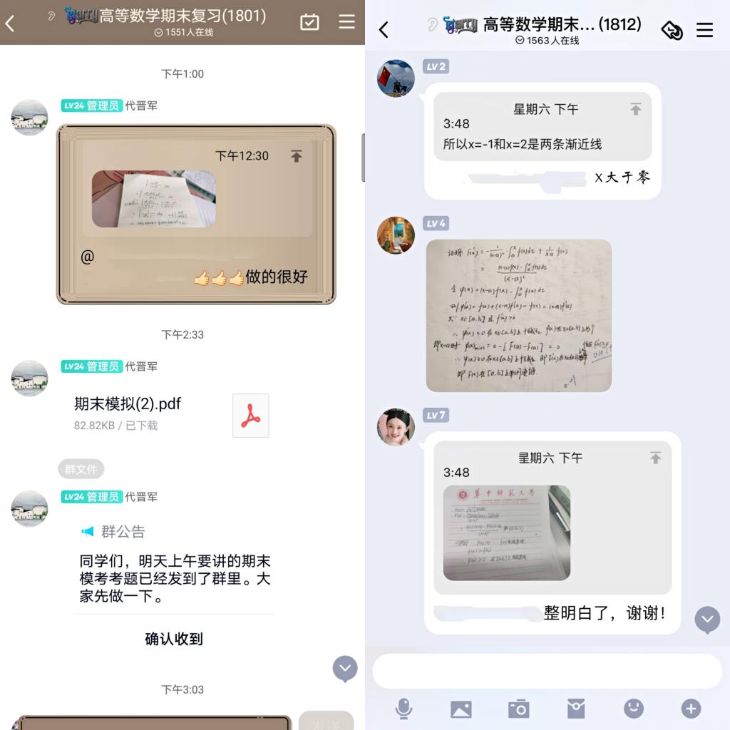 在每日课程结束后,代晋军会将课堂上所归纳的知识点与典型例题整理成文档上传至群文件,方便同学们复习与备考。同学们在交流群中提出自己的课后问题,大家互助讨论,学习氛围浓厚。代晋军表示课后的习题能帮助同学们更好地理解知识点,有问题不要紧,大家可以集思广益讨论出很多解题思路,有效地提高复习地效率。