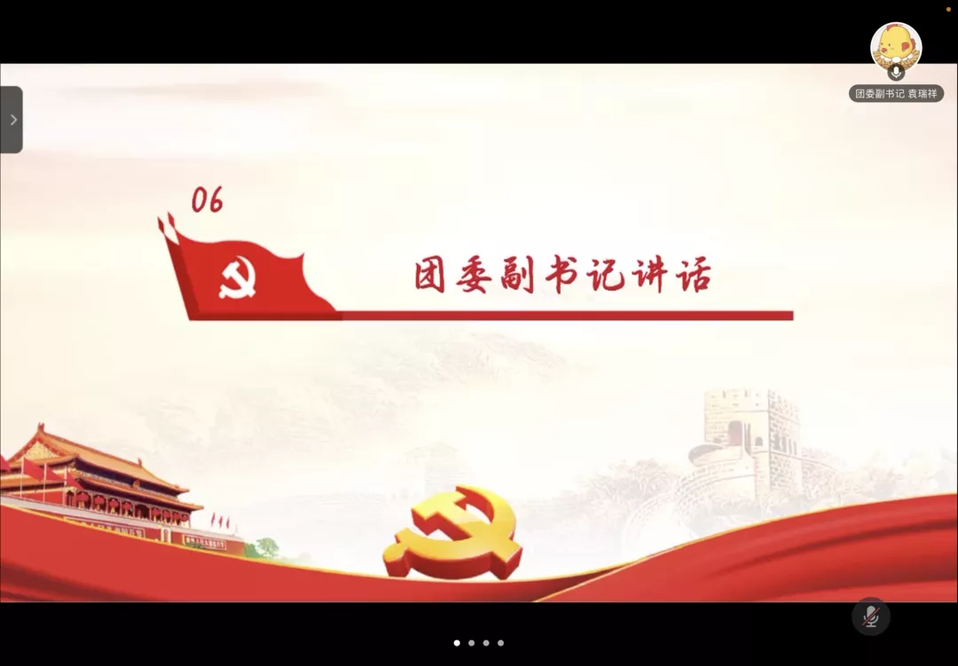 会议最后,袁瑞祥对本次会议进行了补充介绍,他提出了对各团支部青年大学习完成情况的要求。同时,他强调了“团日活动需要在团支部当中活起来”,并提到了活力团支部的建设,建议各位团支书做好团支部的动员。