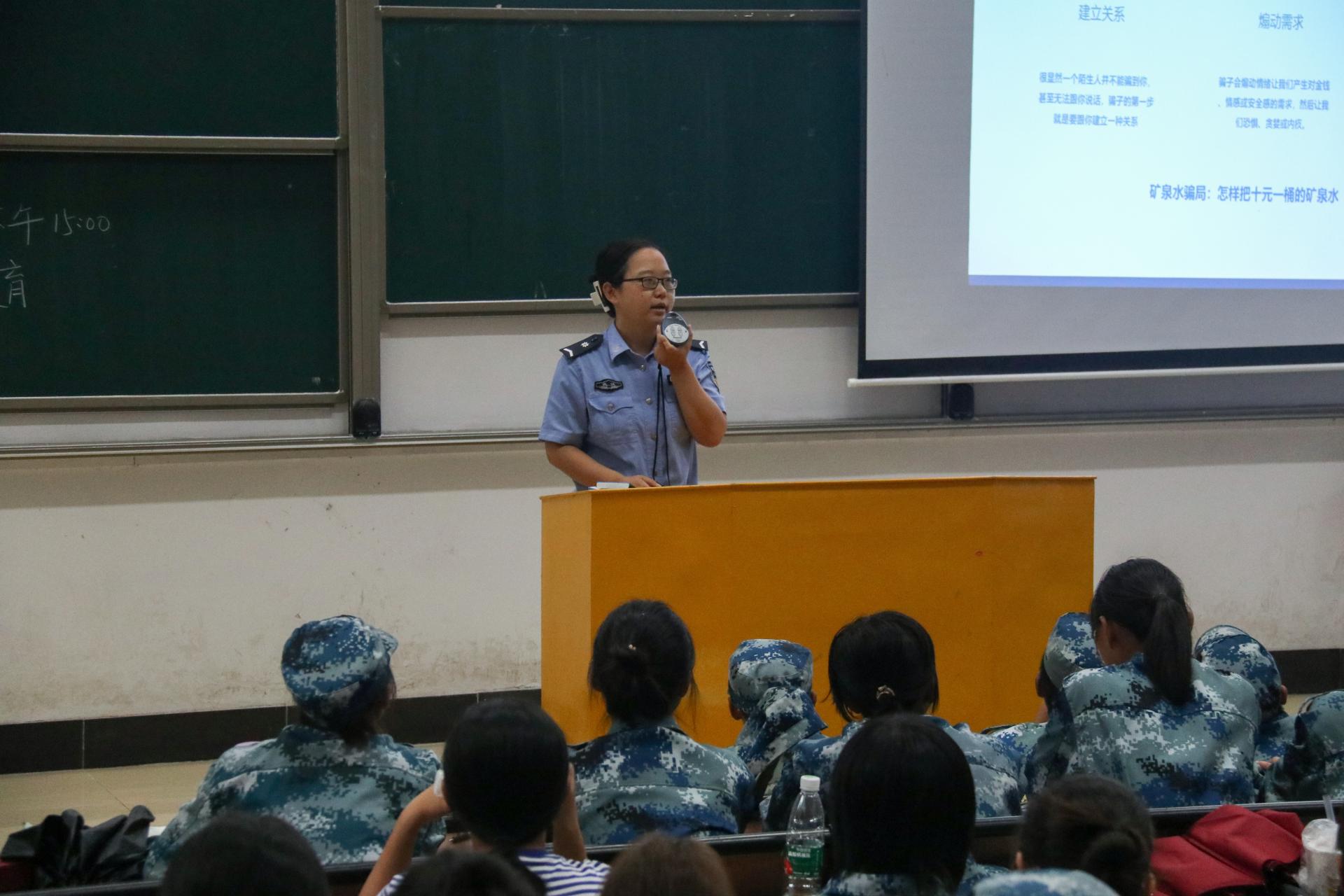 此次活动邀请马房山派出所刘警官为全体同学进行反诈宣讲。在宣讲中,刘警官用一个个生动具体的案例对各种骗局进行了分类介绍,通过深度分析骗术根源与受骗原因,以案释法,依法论事,帮助学生提高反诈防骗意识和能力,提醒同学们在网上购物、聊天、交友等活动中,要时刻保持警惕,保护个人信息和财产安全。