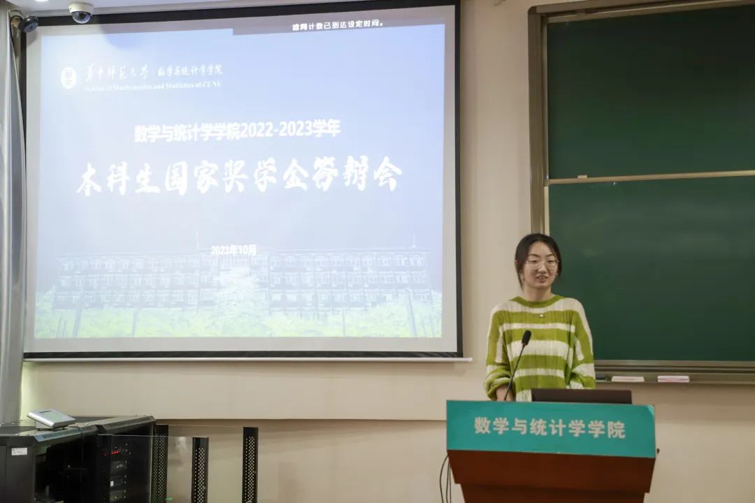 (通讯员 李欣雨)为做好国家奖学金评审工作,充分发挥奖学金的引领作用,10月8日,数学与统计学学院(以下简称“数统学院”)2023年本科生国家奖学金答辩会在六号楼6401报告厅举行。数统学院党委书记刘成竹,院长周远扬,副院长郑高峰,党委副书记田俊,班主任代表蒋代军、安丽想、邓清泉、王春花、王书晶、李乐、宁建辉、帅伟、李娜、郭思培、刘创业、邓勤涛、曲连强、刘梦雅、龙旸靖、蒋咪娜、陈双、罗勇、邓国泰、段然、李佩彦、李正帮,全体本科生专兼职辅导员以及各班学生代表出席本次答辩会。答辩会由辅导员申墁烨主持。