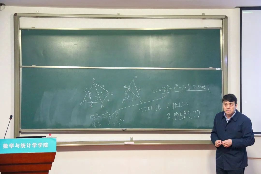 (通讯员 祁鑫烨)为进一步帮助师范生提高试题研究与命题的专业能力,促进师范生技能的提升,11月10日下午,数学与统计学学院(以下简称“数统学院”)“探知求实 以卷怀生”试卷设计经验分享会在六号楼6401报告厅顺利举行。此次专题分享会特邀湖北省数学特级教师孔凡祥担任主讲人,数统学院党委副书记杨可军、“数苑”学习发展中心指导老师蔡子尧、本科生辅导员申墁烨出席活动现场。活动由蔡子尧主持。