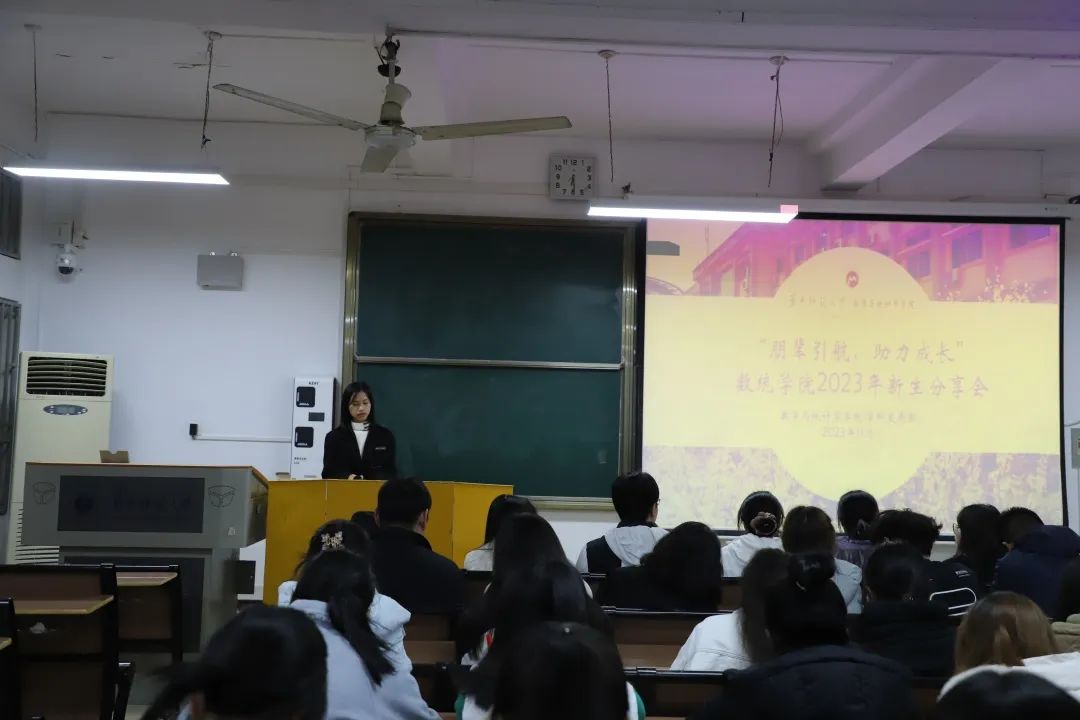 (通讯员 雷恩怡)为引导2023级新生更快适应大学生活、帮助他们明确大学目标和未来规划,11月25日晚,数学与统计学学院(以下简称“数统学院”)“朋辈引航,助力成长”新生分享会于六号楼6201教室顺利开展。本次新生分享会由国家奖学金获得者柴泽来、邓懿菲、潘欣雨主讲,创新创业部学生助理黎丽萍主持,学院团委书记武靖出席分享会。