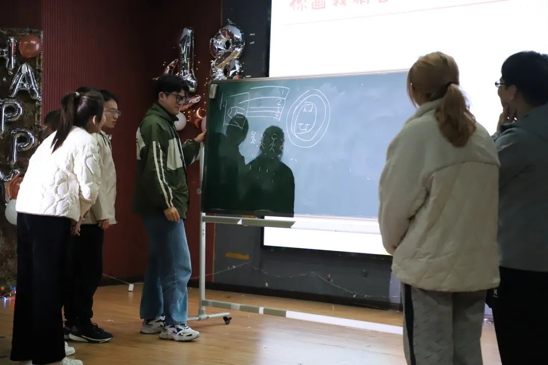 中场游戏环节。在主持人简要介绍了活动规则后邀请成员上台进行你画我猜、369Bibo。台下的观众也积极参与其中,各组成员在台上默契配合欢呼阵阵,欢笑连连。