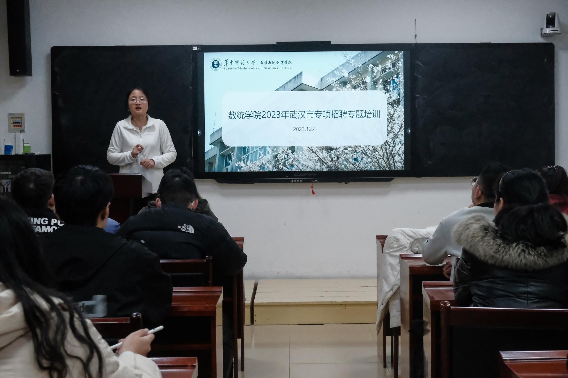 (通讯员 滑怡冰)为进一步提升数统学院2024届本科生就业竞争力,抢抓求职关键期,12月4日,数学与统计学学院2024年武汉市专项招聘交流会于六号楼二楼报告厅顺利举行。本次交流会邀请到了武汉市书城路中学数学教师、数统学院2022届优秀毕业生丁楚进行交流分享,学院2020级本科生辅导员武靖、2024年武汉市示范性学校教师岗意向报名本科生参会。会议由2020级本科生辅导员武靖主持。