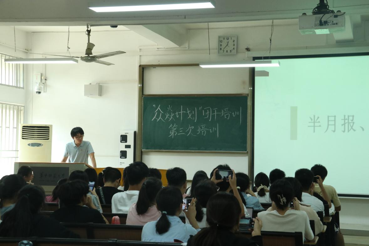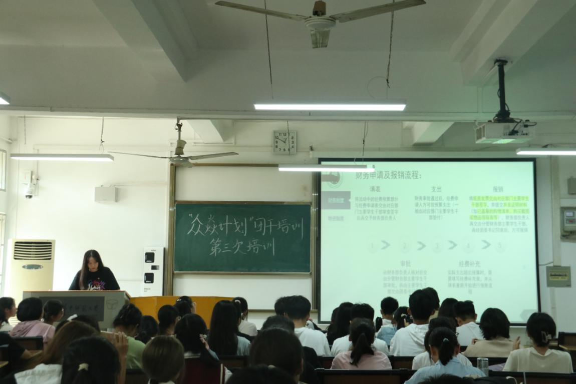 (通讯员 韩泊垣)为加强学生干部队伍建设,规范学院团委学生会工作,11月16日中午,华中师范大学数学与统计学学院(以下简称“数统学院”)团委学生会第十六届“众焱计划”训练营第三次团干培训于六号楼6201举行。本次培训由组织部负责人李晨曦主持。由秘书部负责人王润、财务部负责人叶丽杉主讲,团委学生会全体助理营员参与本次活动。