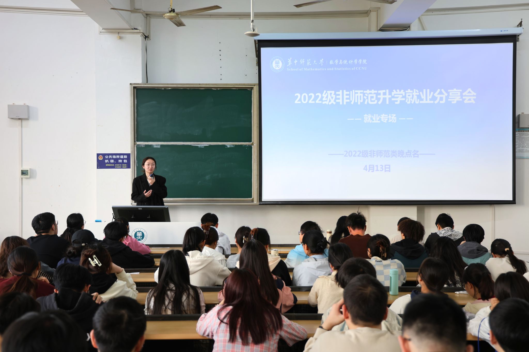 4月13日下午,2026届非师范就业专场分享会于9301教室开展,本次分享会邀请2021级本科生付新月、徐成捷进行就业分享。
