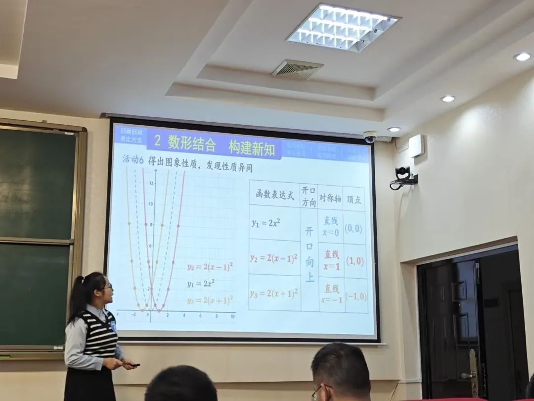 7号选手梁林佳“二次函数的图像及性质”一课巧妙的利用数形结合思想,对二次函数的图像和性质进行了详细的分类和讲解。