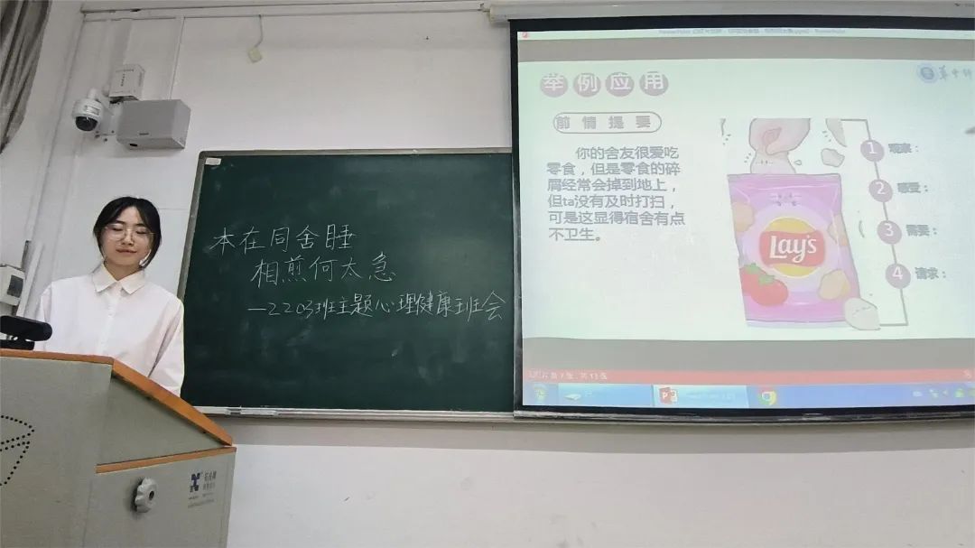 班主任程婷老师真切地表达了对此次班会的肯定,更表达了对同学们的期望与祝福,希望2203班的同学们能更加团结互助,寝室关系更加和谐。同时,希望能加强师生间的沟通、互动。